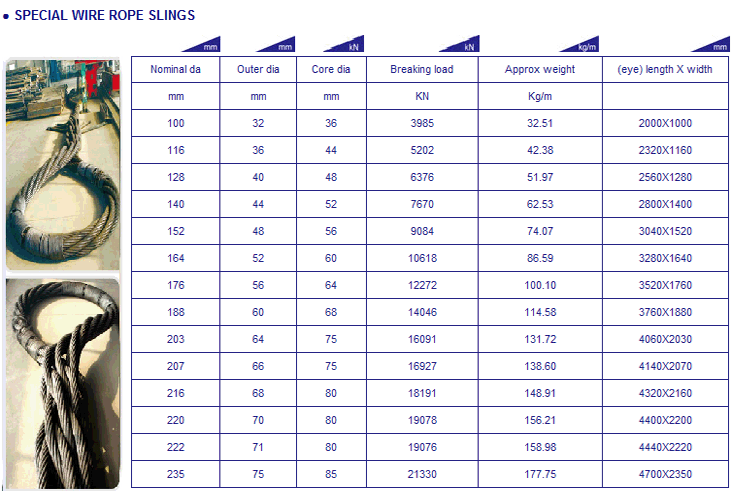 Specifications of Special Wire Rope Slings